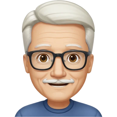 old guy, swept back white hair, blocky face, rectangle frame glasses, soul patch emoji