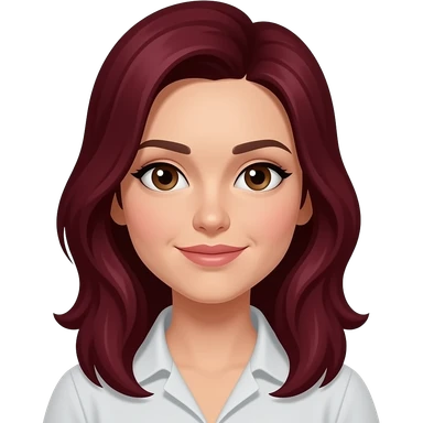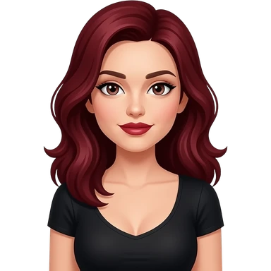 Dunkel rote haare, weiblich und helle hautfarbe dunkelroten lippenstift aber nir leicht und ein schwarzes top und mittlere oberweite emoji