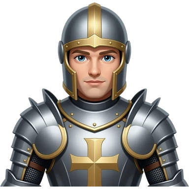 knight wearing black armor with brass trim, with a white shield with a purple dragon design on it emoji