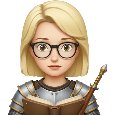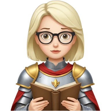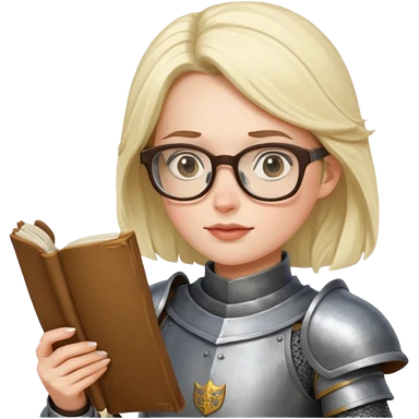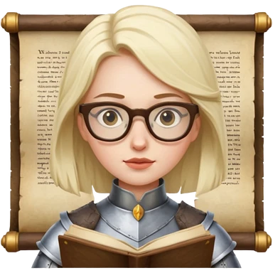 Female knight reading scroll, wearing glasses — curious expression. emoji