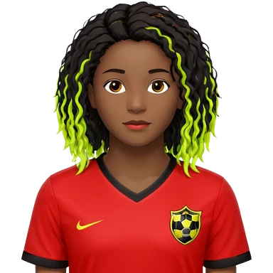A imagem retrata um jovem de cabelo vermelho-neon e corte moderno, vestido com uma camisa de futebol preta e vermelha e uma corrente de ouro. Ele está em um ambiente interno, olhando para a câmera com uma expressão engajada e as mãos levantadas em um gesto de ênfase emoji