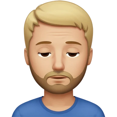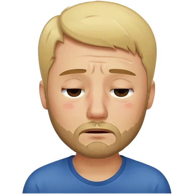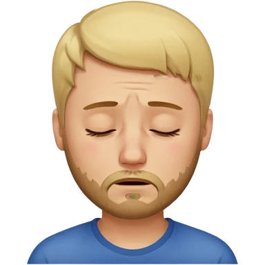 A man with short blond hair hair and a short brown beard making a weary face with eyes closed emoji