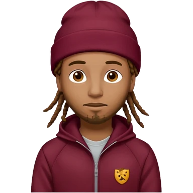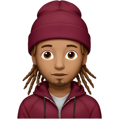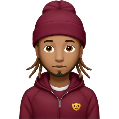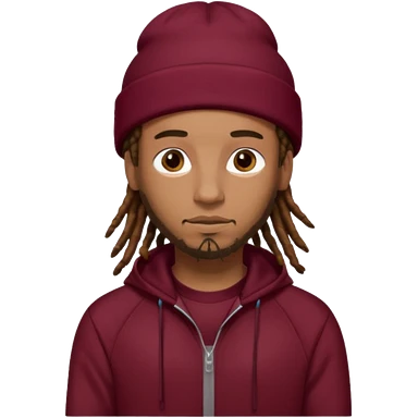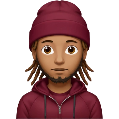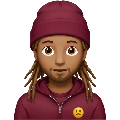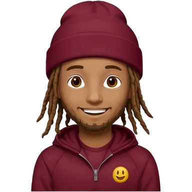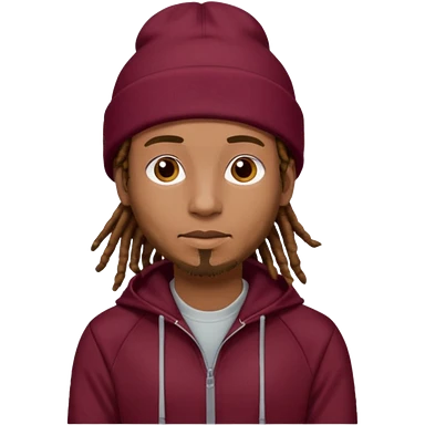 Animate a caramel skinned male with brown dreads and a tan colored beanie. Wearing a burgundy tracksuit on with no beard emoji