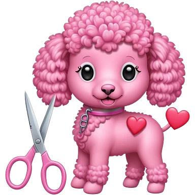 poodle color rosada con corazoces y tijera emoji
