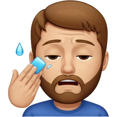 A man with light brown hair and a short brown beard making a wah cry face with eyes closed emoji