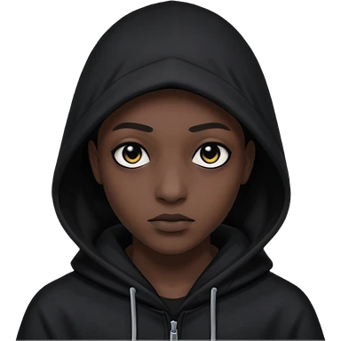 Une personne mystérieuse sous capuche noir avec les yeux noir emoji