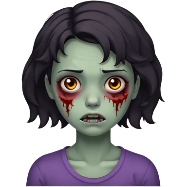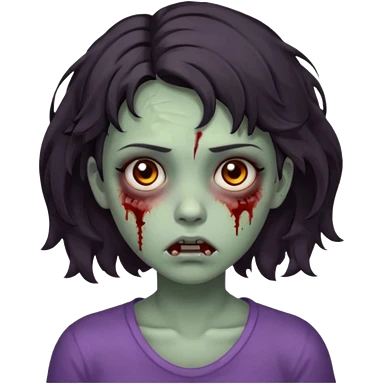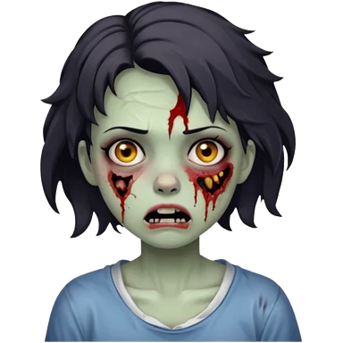 Zombie girl with bruises, she has a dark short wavy hair, she has a tired expression and dark eyes, she has dark circles too emoji