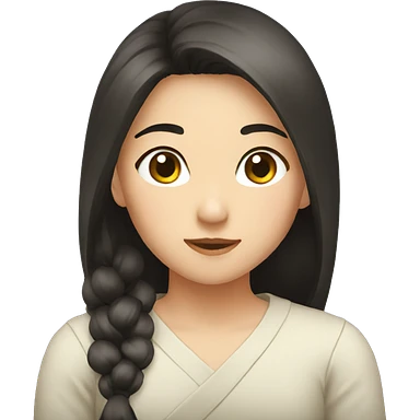 Beyaz ten, açık kumral uzun düz saç, çekik küçük ela gözler, minik burun, pembe dolgun dudaklar belirgin elmacık kemikleri olan bir kız emoji
