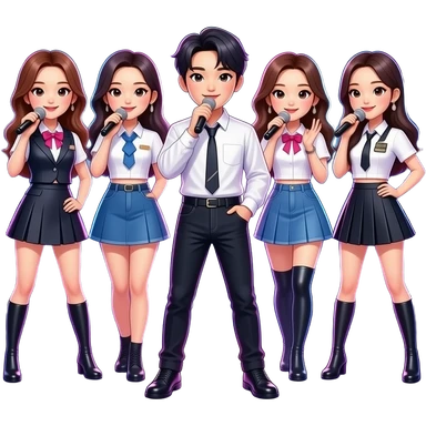 korean boy singing k pop (with big head and small body) emoji
