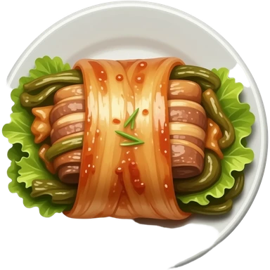 Korean Boiled-Pork wrapping by kimchi on dish no dimsum emoji | AI Emoji Generator