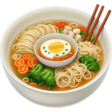 Korean food set including noodles, egg, greens, and side dishes, clean and simple emoji