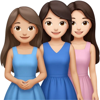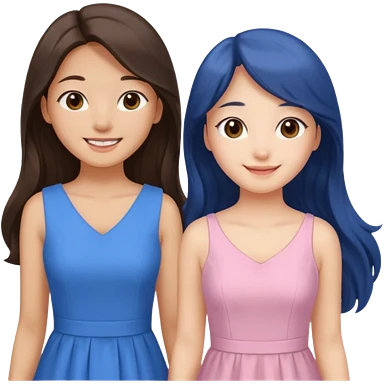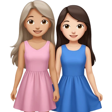 Korean girl in blue and white long haired brunette girl in light prink dresses smiling emoji | AI Emoji Generator