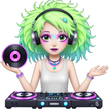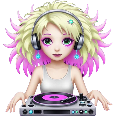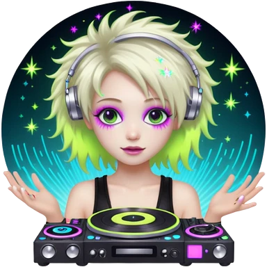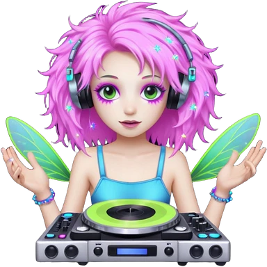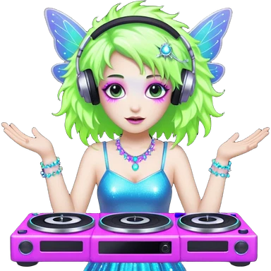 hard-techno-rave-fairy,-holding-a-dj-turntable,-wild-hair,-neon-sparkles,-minimal-background emoji