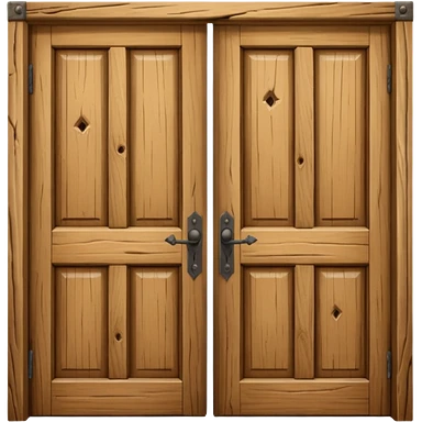 a wooden door that is wide open. The door frame is simple and matches the wood tone of the door. emoji
