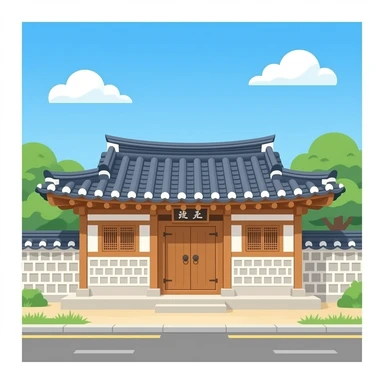 korean traditional house without sky and grass, with a street emoji