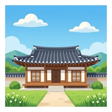 korean traditional house without sky and grass, with a street emoji | AI Emoji Generator