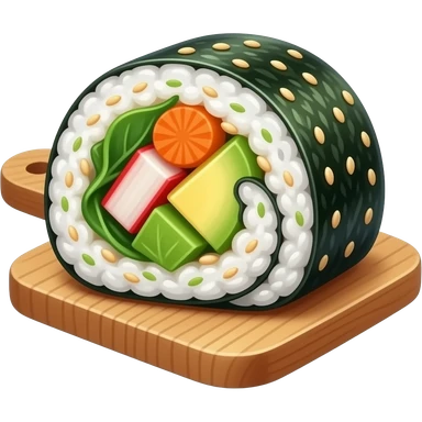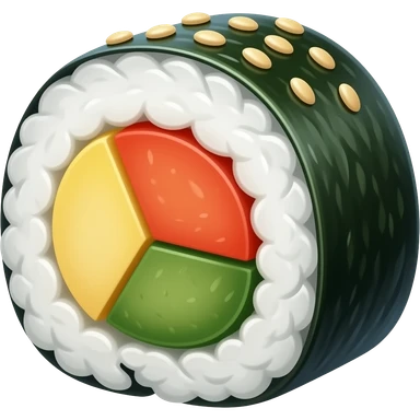 Korean gimbap, cinematic realistic, sliced roll, colorful fillings, sesame seeds, glossy seaweed, studio lighting, ultra detailed emoji