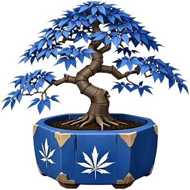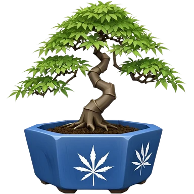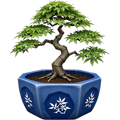 Korean very old broken Stone Age 35-sided polyhedron-shaped shallow dark moss rough bark blue maple tree bonsai pot emoji | AI Emoji Generator