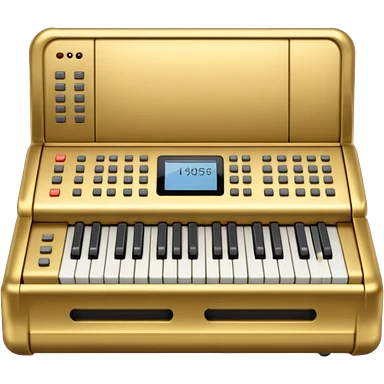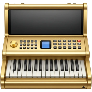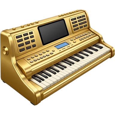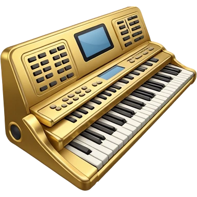 Create a professional and artistic emoji that represents writing music tracks. The design should feature a large monitor displaying musical notes or a score, positioned in front of a professional Korg synthesizer. Add elements like studio headphones, a MIDI keyboard, and an audio interface to symbolize the tools used in music production. Use sleek, modern colors like silver, black, and neon accents to convey the professional environment of music composition. The background should be transparent. emoji
