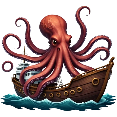 Kraken – Giant octopus with tentacles wrapping a ship emoji | AI Emoji Generator