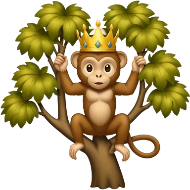 Kral taçlı ağaca çıkmış maymun emoji | AI Emoji Generator