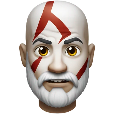 Kratos depicted as an Android emoji, with a stern face, red tattoo, and beard, in a clean, minimal, flat Android emoji style emoji