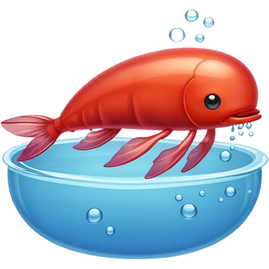 A single krill with a transparent reddish body and four pairs of legs, similar to a prawn emoji