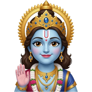 Radha and Krishna emoji, holding hands, Krishna with blue skin and flute, Radha in colorful saree emoji