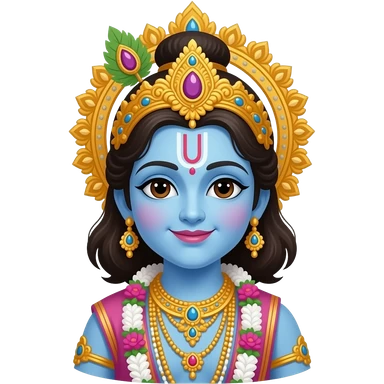 Radha and Krishna together as emoji, Krishna with blue skin, peacock feather, flute, Radha in traditional attire emoji