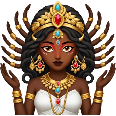 a golden statue of a Hindu deity seated in a cross legged posture with one hand in a blessing gesture, adorned with ornate jewelry�. The figure sits on a decorated pedestal, radiating a sacred and traditional aura�. emoji