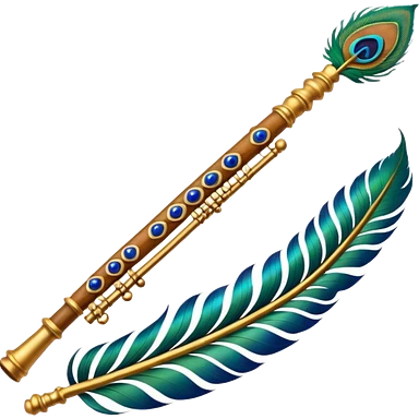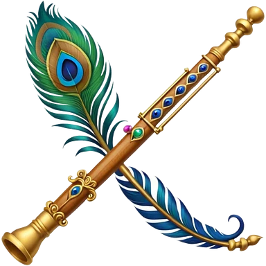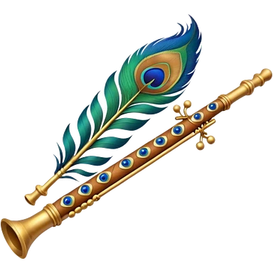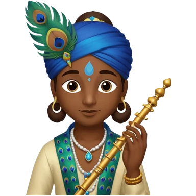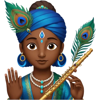 Krishna playing flute surrounded by cows, blue skin, peacock feather emoji