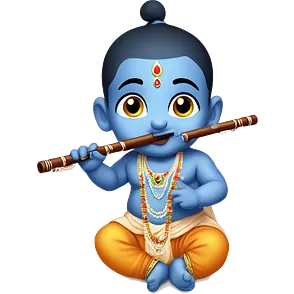 Krishna with blissful expression, eyes closed, playing flute, blue skin, peacock feather in hair, emoji style emoji