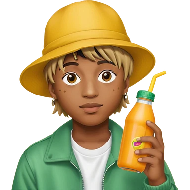 Beyaz uzun ve düz saçları olan,mor göz rengi olan, bembeyaz tenli bir erkek,genç emoji