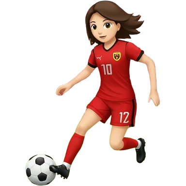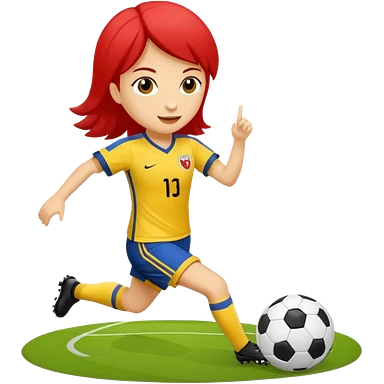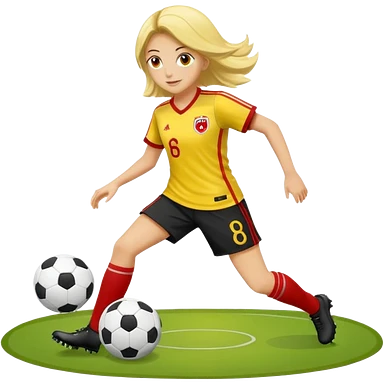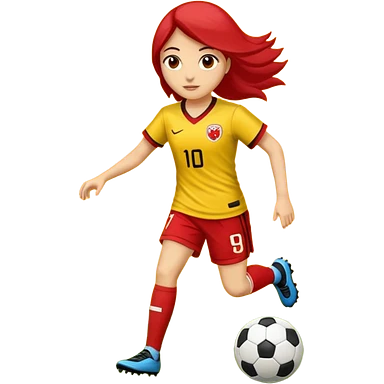 kumral bir kadın sarı kırmızı bir formayla futbol oynuyor emoji