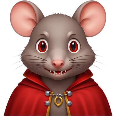 Vampire animal, rat in red collar cloak, red eye, fangs emoji