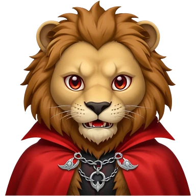 Vampire animal, lion in red collar cloak, red eye, fangs emoji