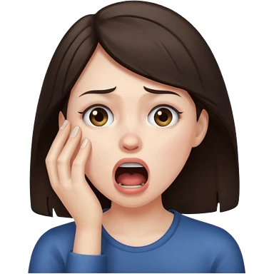 a brunette woman choking herself emoji