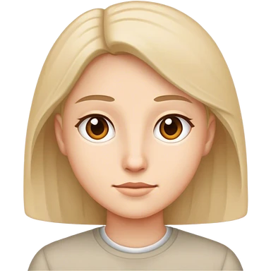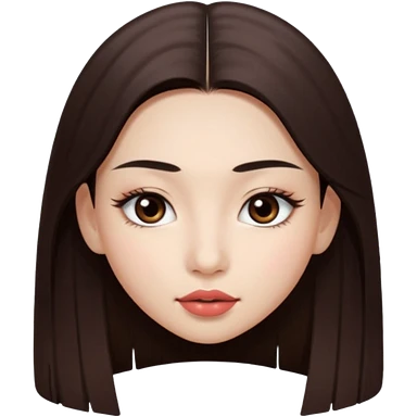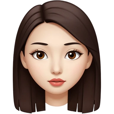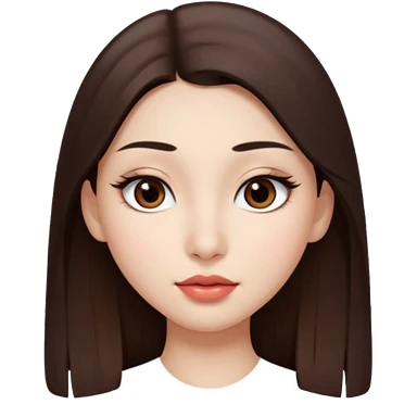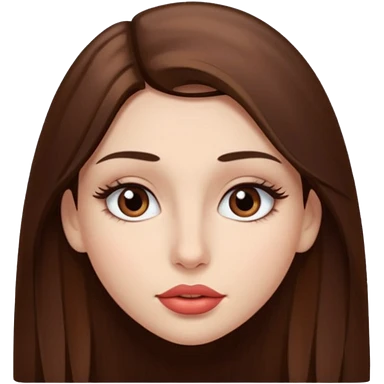 Una chica con piel muy clarita con pleo liso largo de color castaño y unos ojos marrones oscuro y labios grandes y nariz bonita y con unas pestañas que parezca asiatica que tenga las cejas un poquito mas juntas emoji