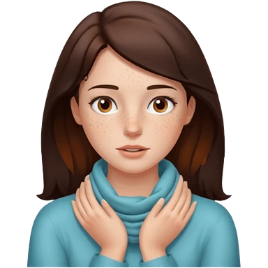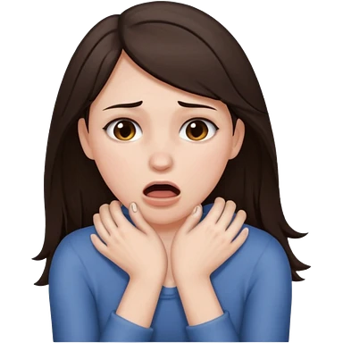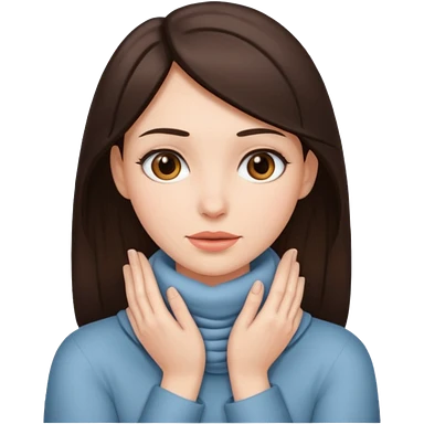 a brunette woman with two hands on her neck emoji