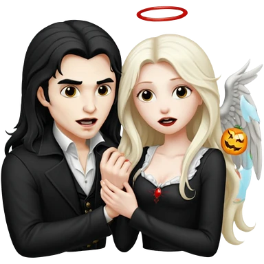 Vampire man biting angel woman emoji
