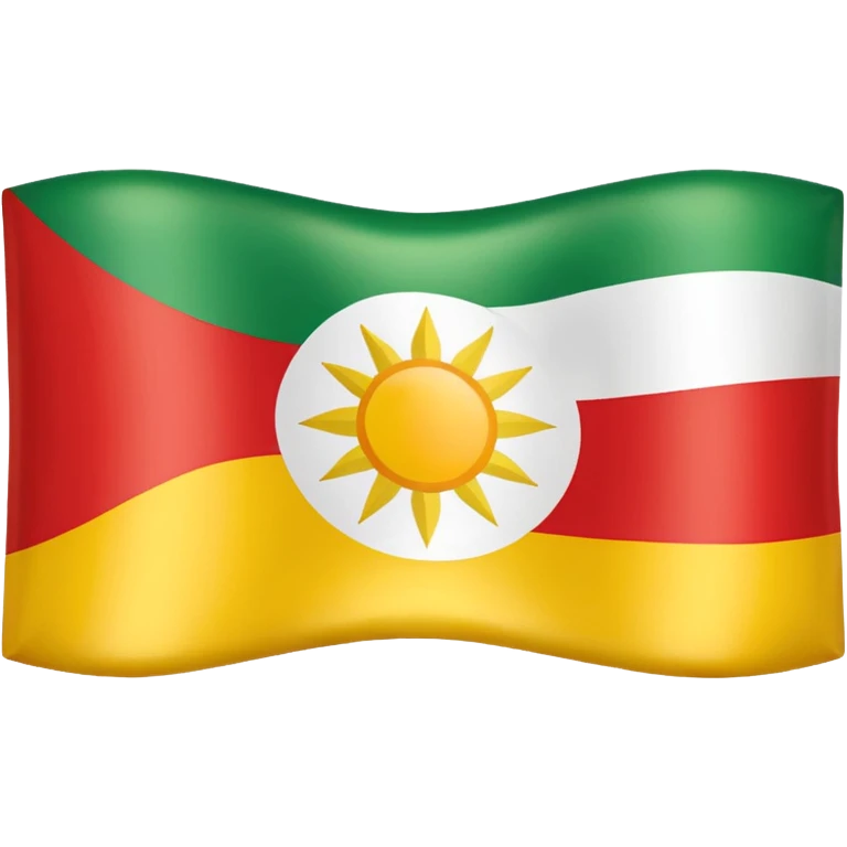 Kurdistan flag, Apple iOS style emoji, glossy rounded rectangle, three horizontal stripes red white green, bright yellow 21-pointed sun centered on white stripe, official Kurdistan flag proportions and emblem, shading and finish like iOS flag emojisemoji
