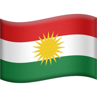 Emoji-style Kurdistan flag: red, white with yellow sun (21 rays), green stripes, bright and simple.” emoji