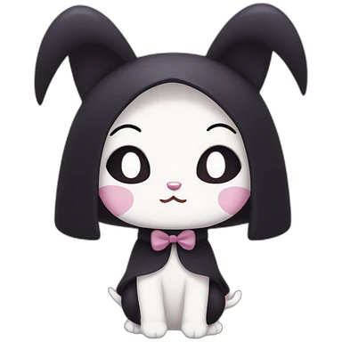 Kuromi Sanrio wearing hoodie with pink skull emoji