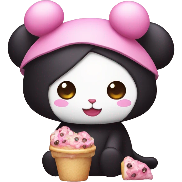 Kuromi Sanrio wearing foodie with pink skull emoji | AI Emoji Generator