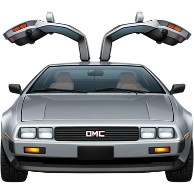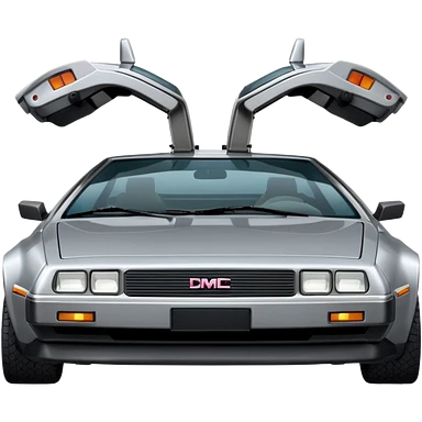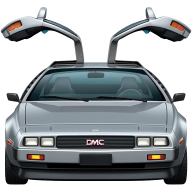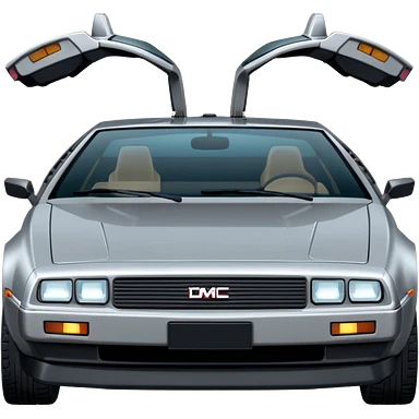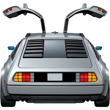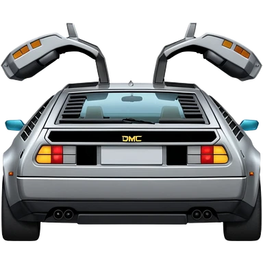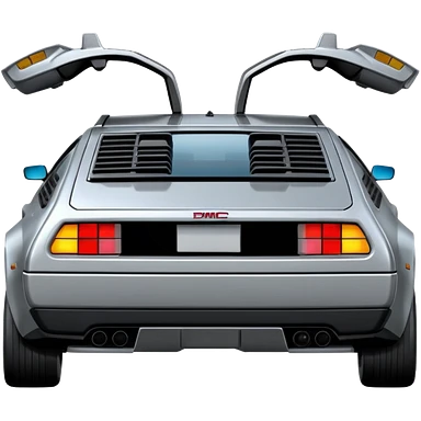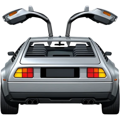 Silver DMC 12 Delorean, closed doors, backside view emoji