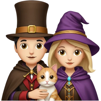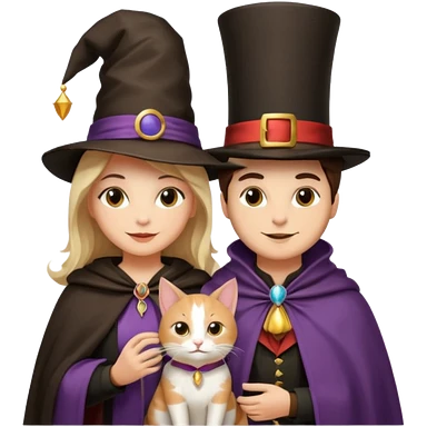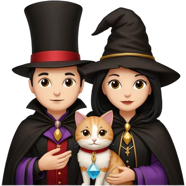 magician couple and their pet cat emoji