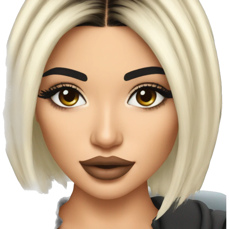 Kylie Jenner as an emoji, glamorous makeup, long hair, confident expression emoji