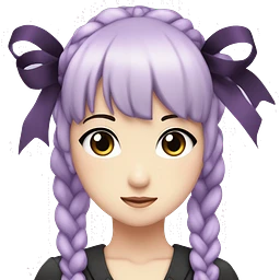 Kyoko Kirigiri, light purple hair, purple eyes, one braided hair, black ribbon emoji