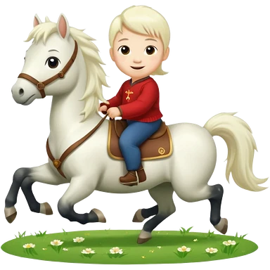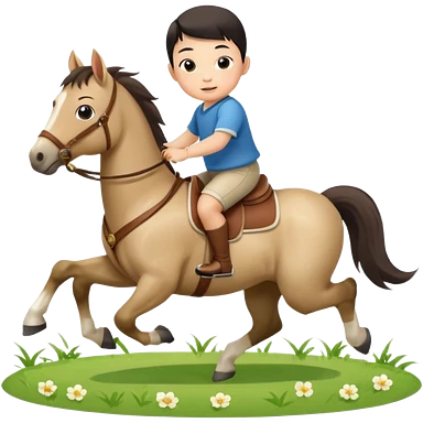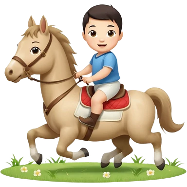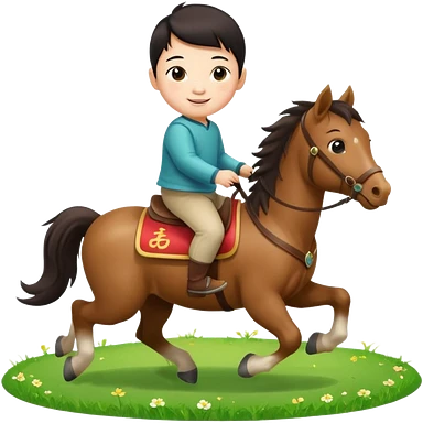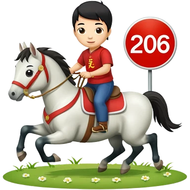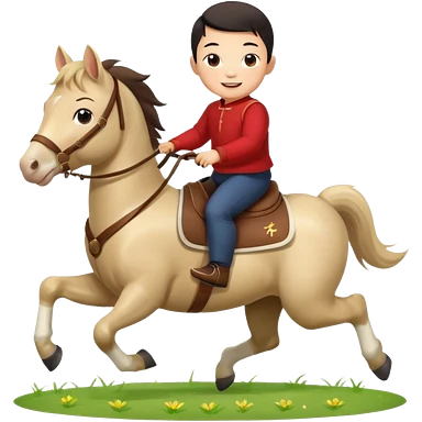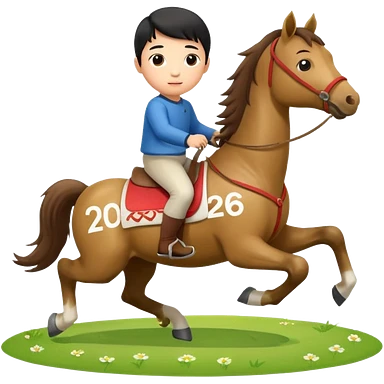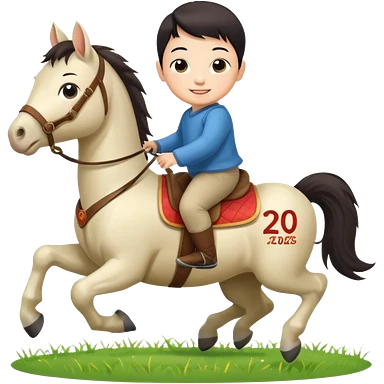 l little chinese boy riding on a cute horse running on the grass with 2026 year label emoji