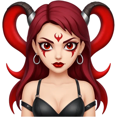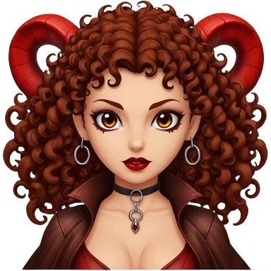 Lilith symbol seductress evil brown curly haired sexy succubus woman with leather on emoji